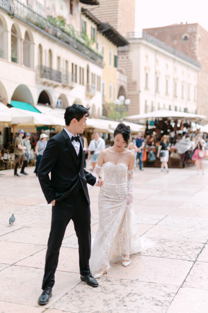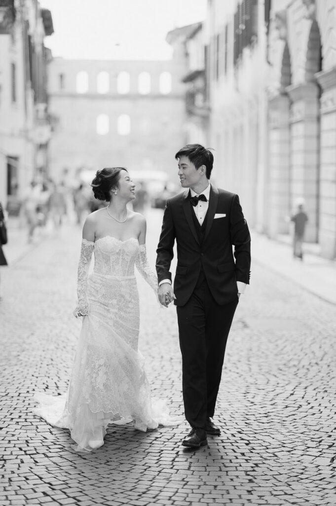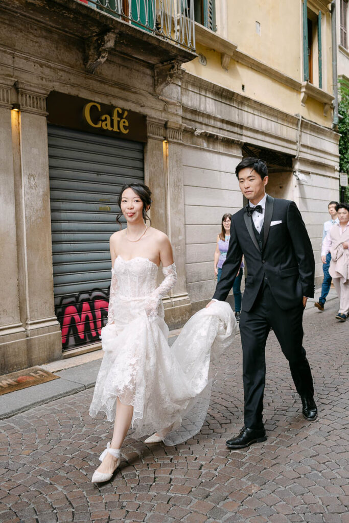Walking through the city without a fixed plan created a pause between preparation and ceremony — a moment where everything slows down slightly. Without guests, without structure, and without the pressure of timing, this part of a Verona wedding often becomes one of the most natural.