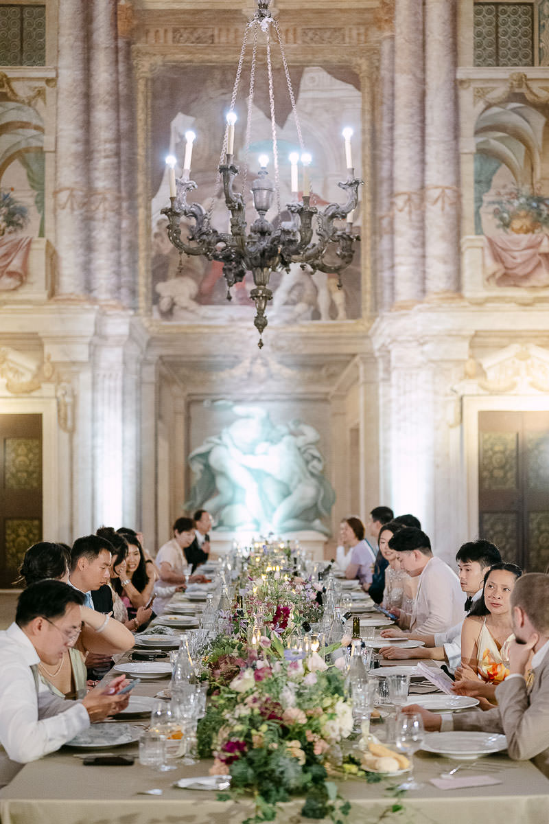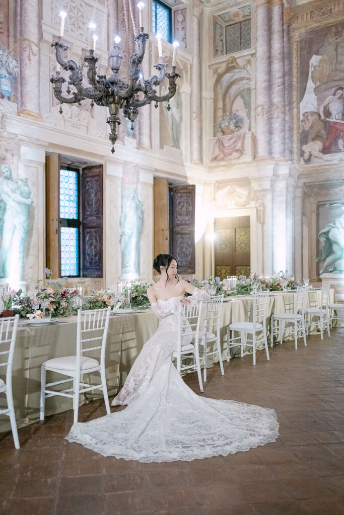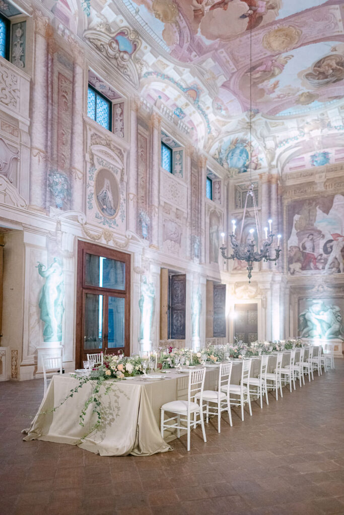This intimate wedding at Villa Arvedi, just outside Verona, offered exactly what they were looking for. Not in terms of size, but in terms of presence. The architecture, the quiet, and above all the Sala dei Titani created an atmosphere that didn’t require a large audience to feel complete.